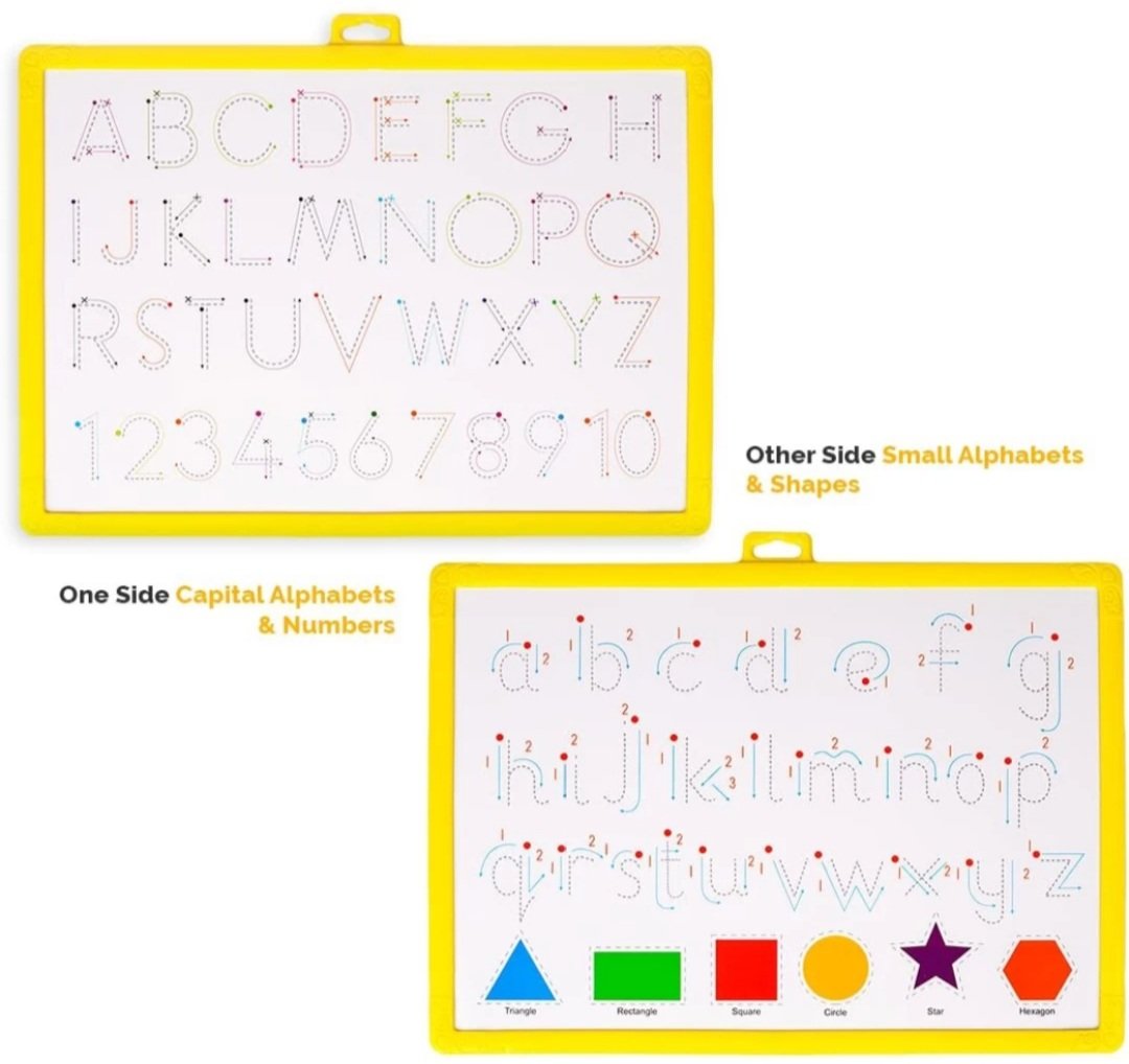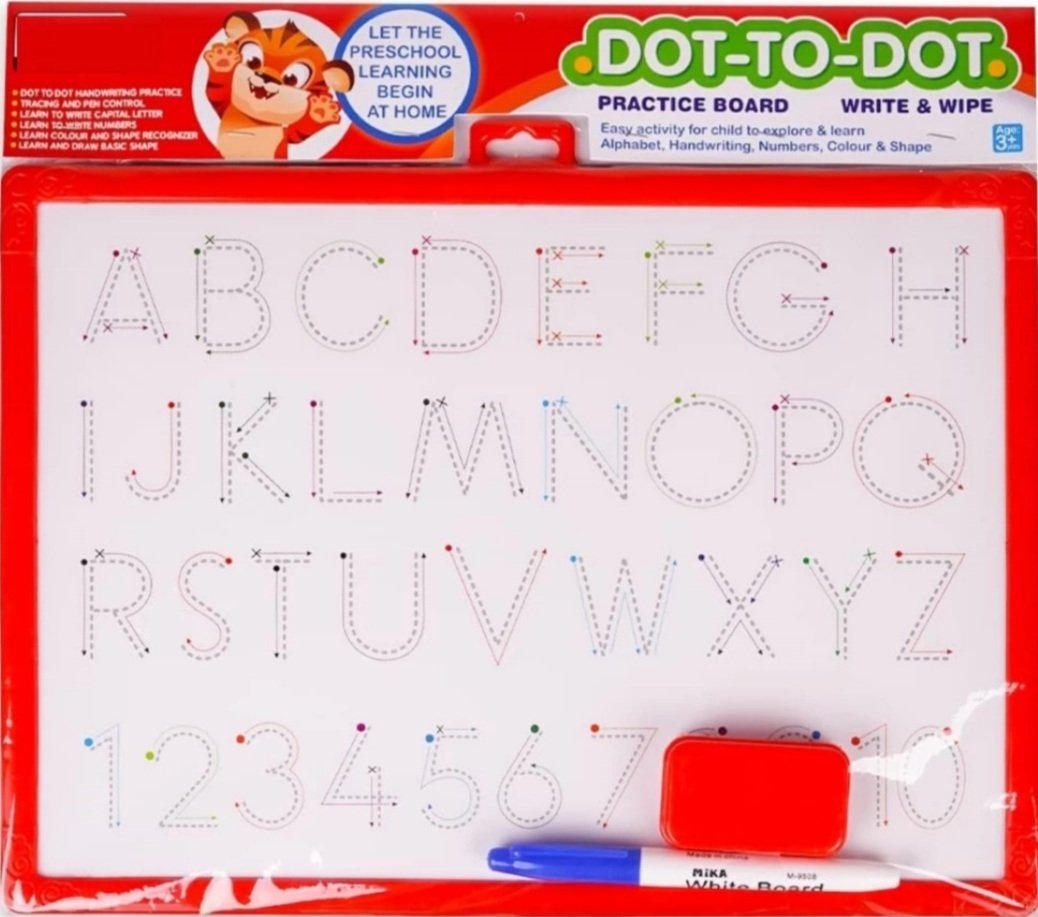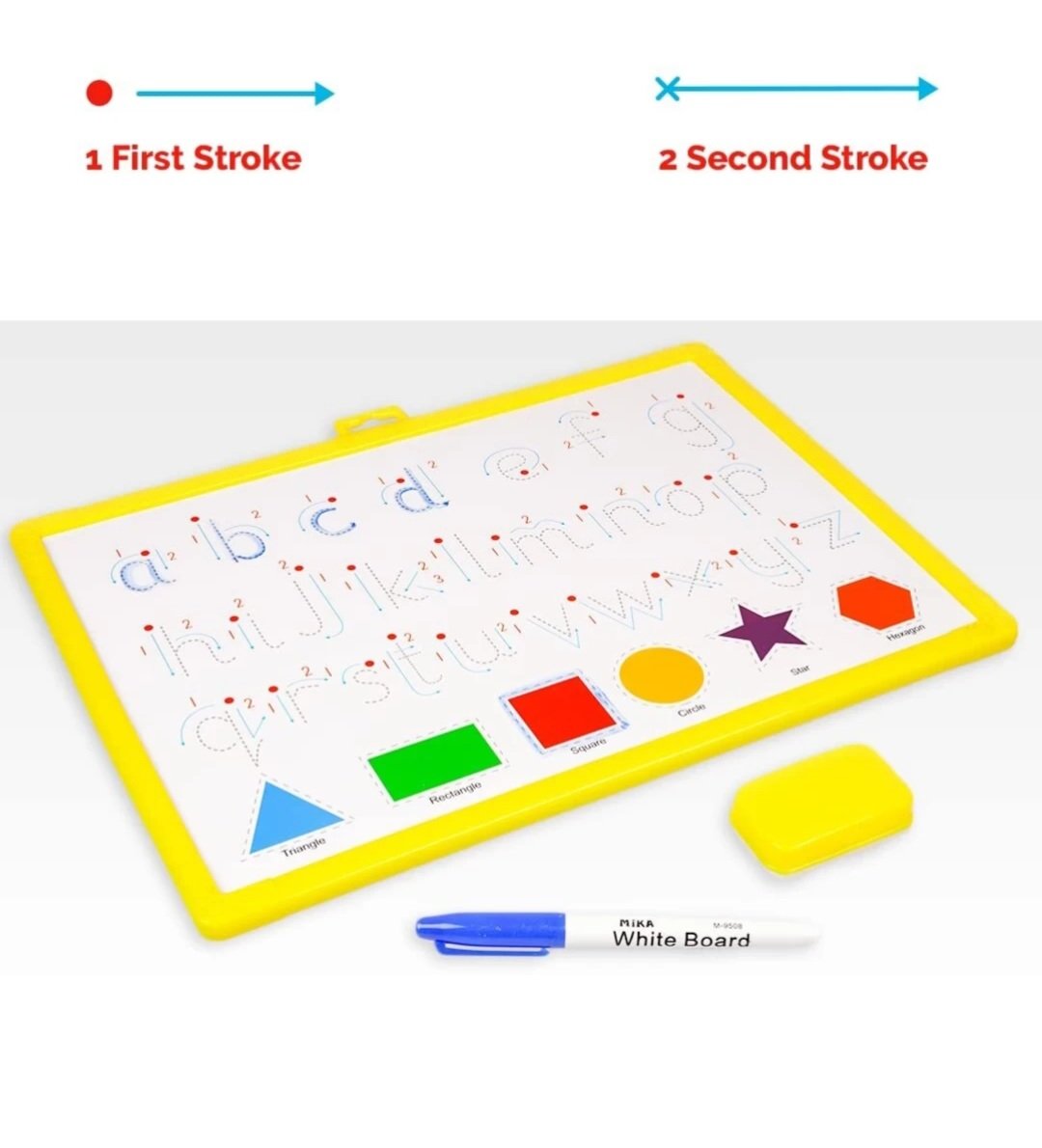 Include 1 Double Sided Writing Practice Board, 1 Duster & 1 White Board Marker.