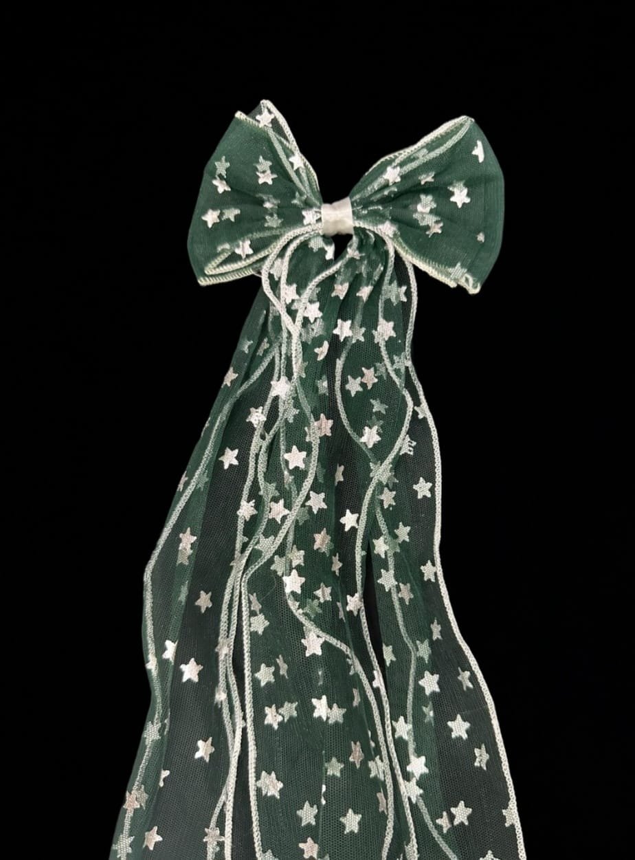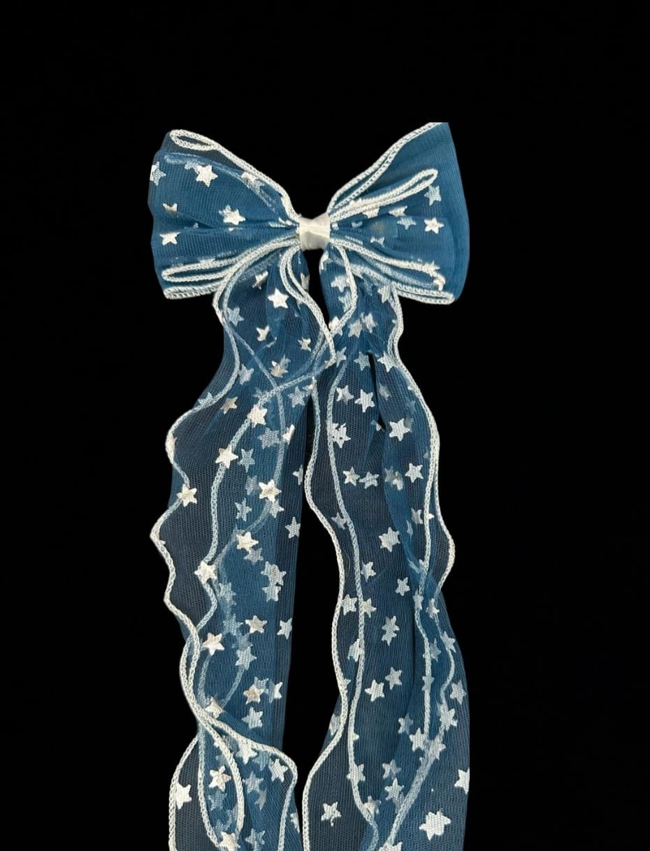 Glittery stars all over on a swirly bow hairclip will surely give a perfect party look to every kid.