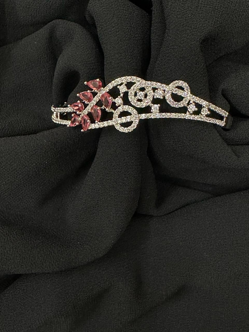 Lovely Rhodium Diamond Lockable Bracelet gives you dashing look. At RS Collections Quality Product are available at Affordable Prices. It Last long when you care for this American Diamond Jewelry. Keep it away from Perfumes, Water and keep it away when you sleep.